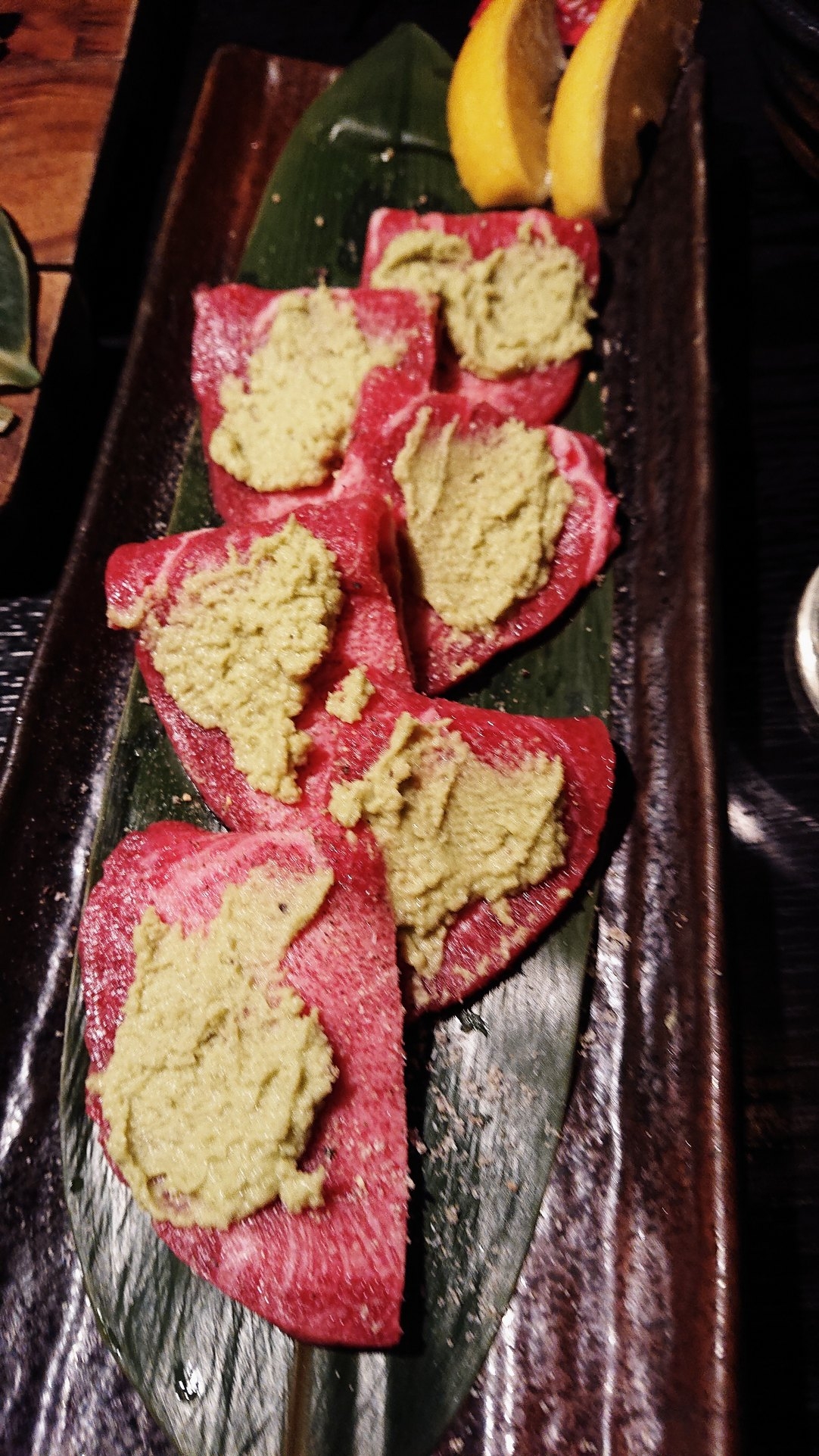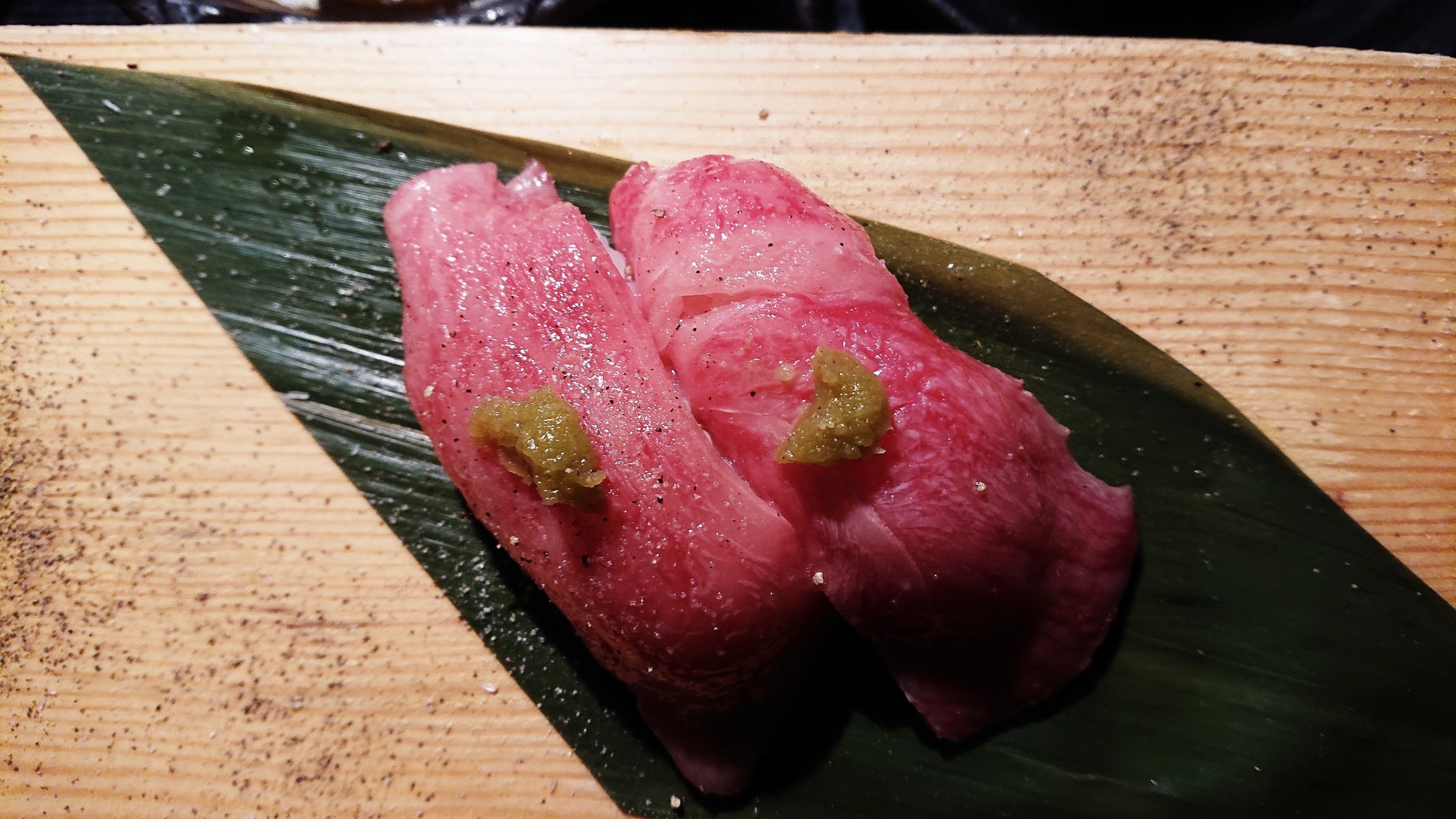 手前のが焼きすきで生卵つけて、奥のは焼きしゃぶ、おろしポン酢で頂きました。