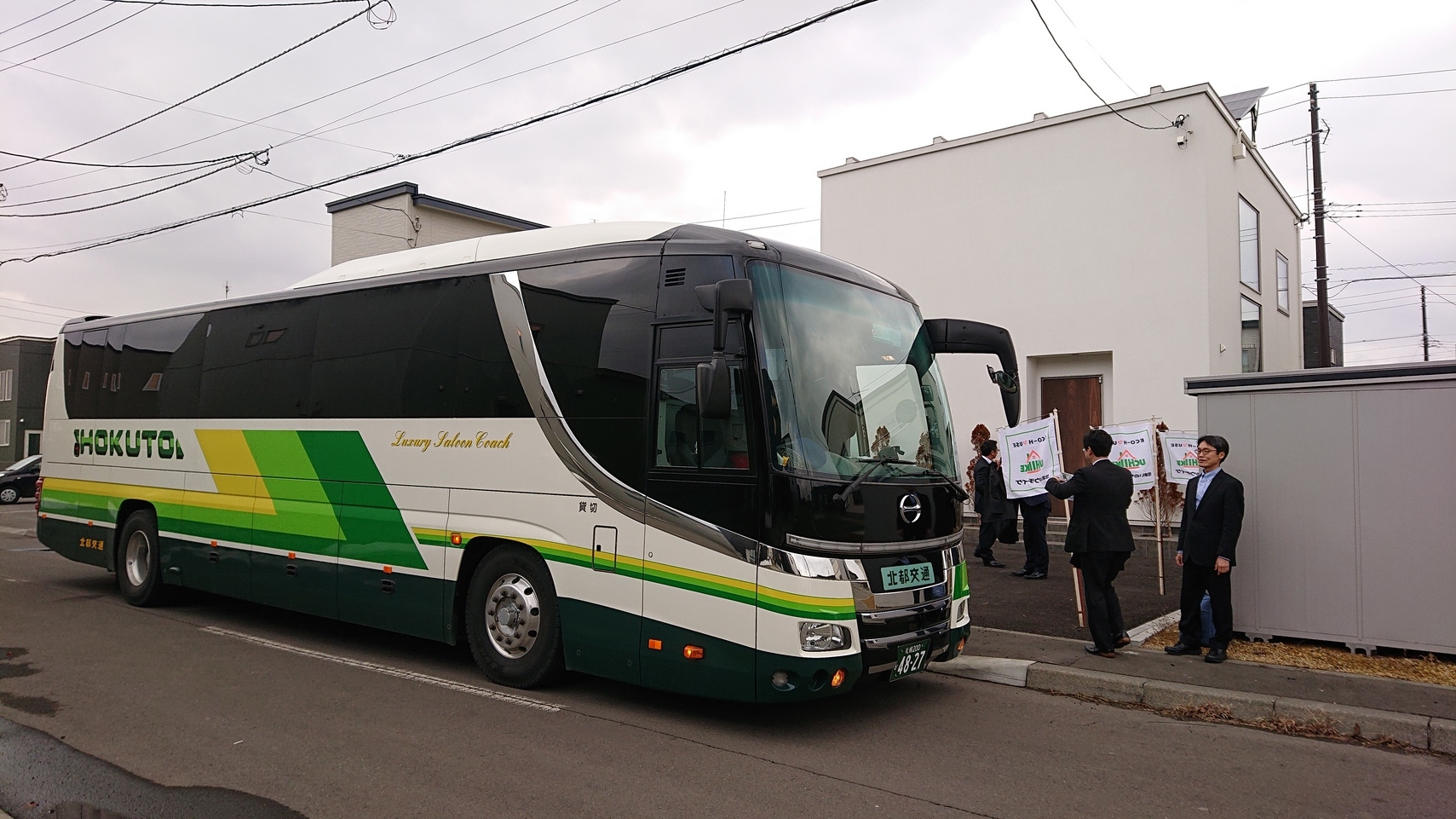 観光バスがモデルハウスの前に止まりまして、わたくし1人で興奮しておりました。