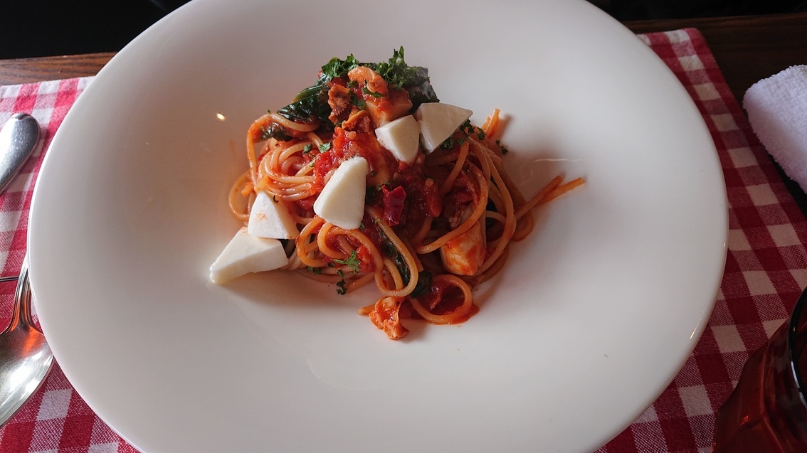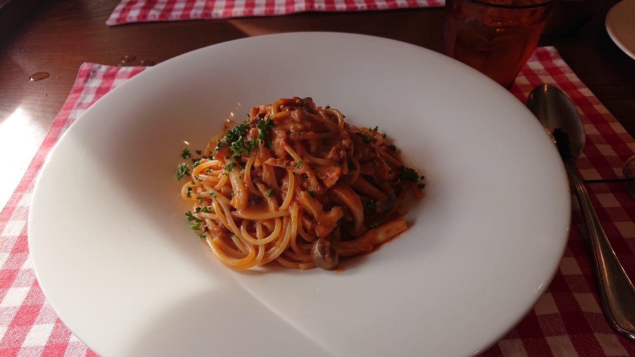 お皿の大きさに騙されるけど、パスタ結構量あります。