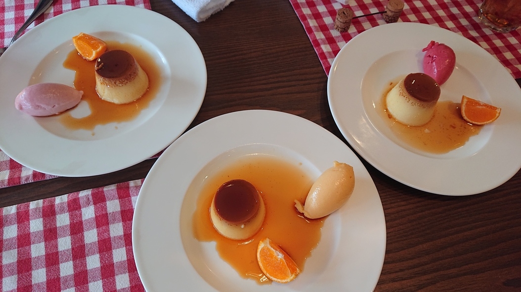 3人分デザートにのっているシャーベットをそれぞれ違う味にしてくれたから、食べ比べして楽しめました~。
