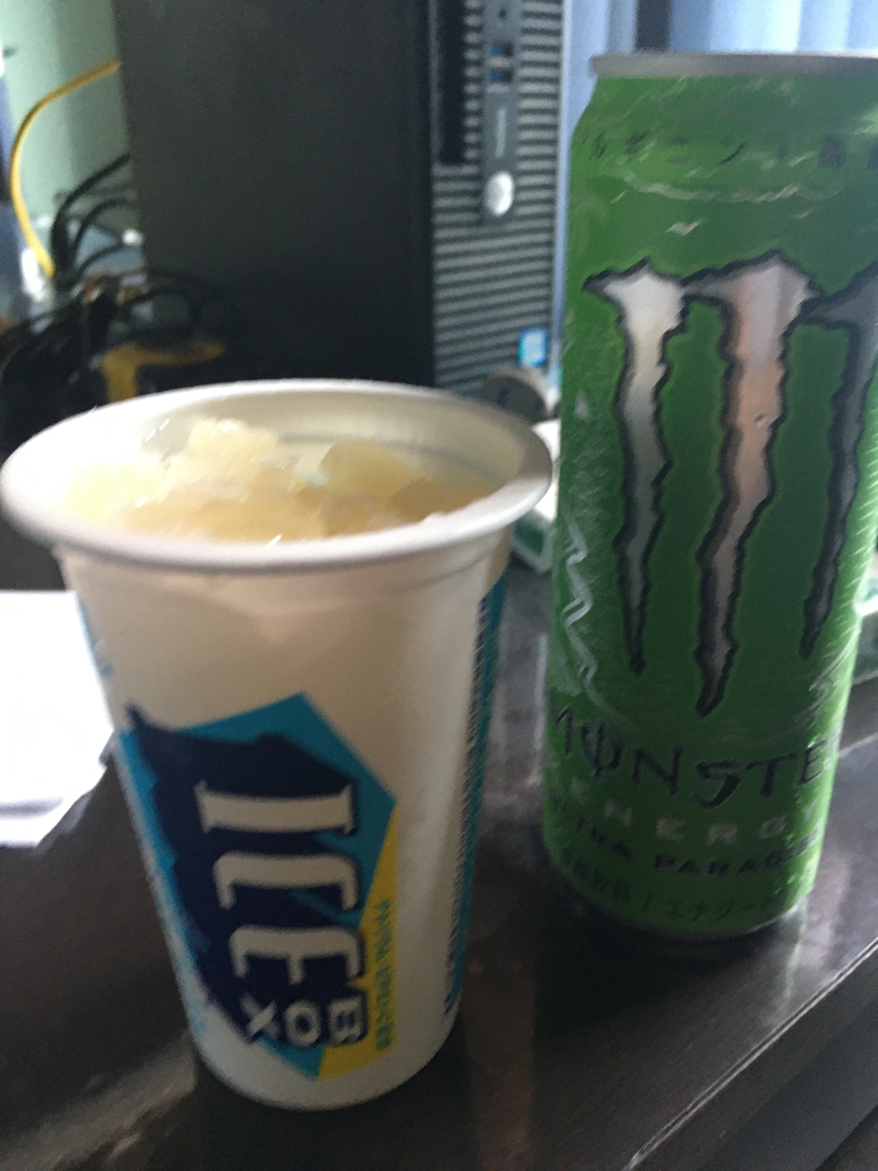 アイスボックス(グレープフルーツの味付きの氷)に飲み物をどーん。