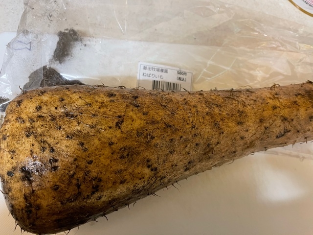 買ってきたのはこちら「ねばり芋」長いもに大和芋の粘りを掛け合わせた新種だそうで、その名の通り粘りが強いそうです。