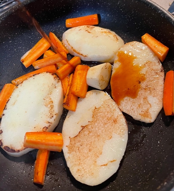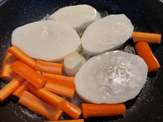 ねばり芋はレンコンのような密度とシャキシャキ感、人参も濃くて甘いです。