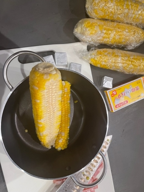 ということで、とうきび剥いて茹でました!(男たちが)