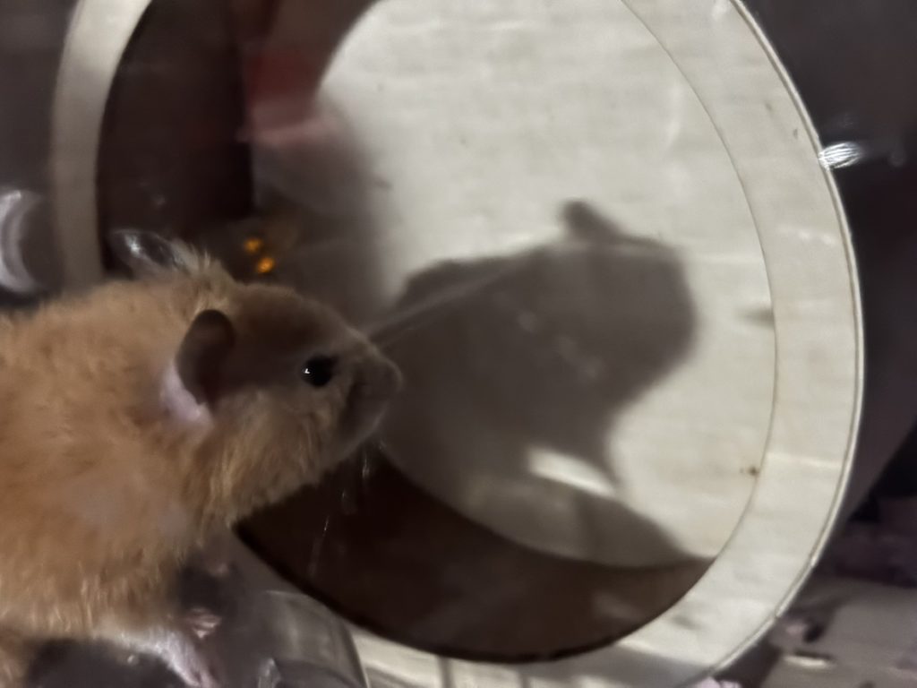 初夏までは、夜行性のハムは夜全力でマラソン大会が始まるので毎晩のように駆動音と、揺れてケージにあたる騒音トラブルでさすがに近所(室内)迷惑なので、他室へ強制送還されていました。