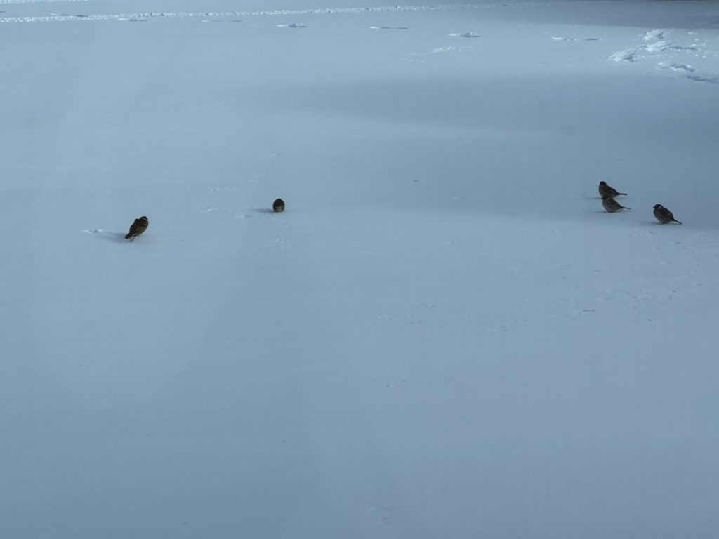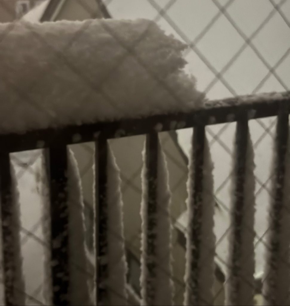 飛んでしまって見切れたカラスの足と、先日沢山積もってノッポになっていた手摺を添えて。