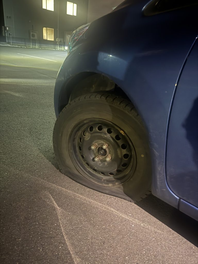 パンクしちゃったって。
