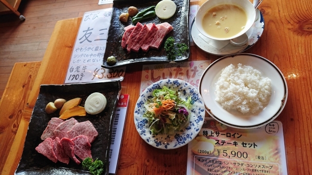 今週のランチ 2019.11.24 林 利都子 36号線上に看板があってずっと気になっていた苫小牧市美沢の「和牛レストラン ログハウス びび」行ってきました! 料理の下のメニュー表の品をそれぞれ頼みました! これ! 白老牛で、それはそれはおいしゅうございましたよ~。 メニュー表の金額を眺めながら有り難く頂きましたよ~。 〆のアイスも美味しかった! ご馳走様で~す!(๑´ڡ`๑) — — — — — — — — — — — — — — — — — — — — — — 室蘭、登別、伊達、苫小牧の新築・注文住宅は住まいのウチイケ。省エネルギー性能の優れた住宅を提供、リフォームも対応しています。モデルハウスも常時見学可能ですのでお気軽にどうぞ。 住まいのウチイケ http://www.uchiike-home.co.jp 林 利都子 左 苫小牧ブログ ブログ 右