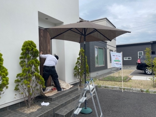 初ペンキ塗り 2021.07.27 林 利都子 本日も暑いです苫小牧。 湿気も多いので髪がタンポポの茎みたくクルクルしちゃいます。 知らない?タンポポの茎に縦に切れ目を入れて水に漬けるとクルクル巻かさるんです。面白くて子供時代それで遊んでいました。 いや、今日の本題はペンキ塗りです。 3年に1度のドアの塗装です。 暑いので若き池田君にお任せしました。 そしたら塗装未経験だそうで、そりゃあ良い経験ね!ということで、軽く教えて廃材で練習塗りをしました。 日よけのパラソルを出してあげて、さあトライ! 今放置してますが、ちょっと心配ですが。 何事も経験です。失敗を恐れてはいけません。 …そろそろチェックしに行きます。 — — — — — — — — — — — — — — — — — — — — — — 室蘭、登別、伊達、苫小牧の新築・注文住宅は住まいのウチイケ。省エネルギー性能の優れた住宅を提供、リフォームも対応しています。モデルハウスも常時見学可能ですのでお気軽にどうぞ。 住まいのウチイケ http://www.uchiike-home.co.jp 林 利都子 左 苫小牧ブログ ブログ 右