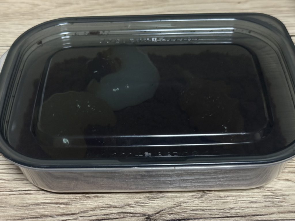 保存容器の下には土に見たてた砕いたクッキーを。