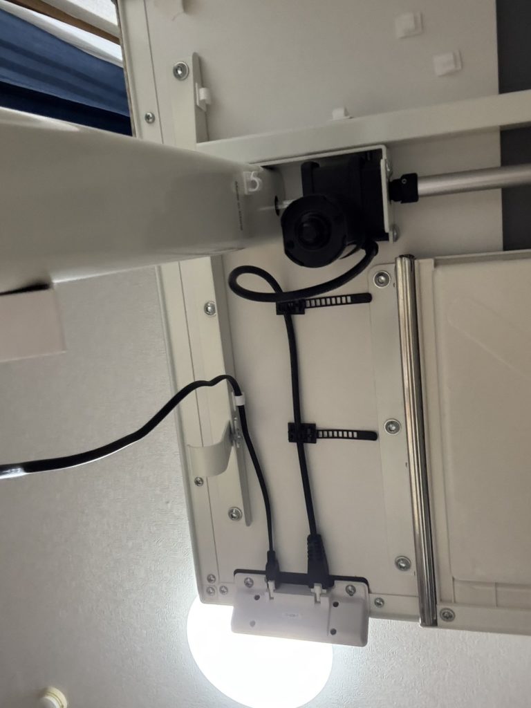 充電器の線やら分岐のHDMIやら、デスクが電気可動式なので線があり、パソコン、switch、スピーカーetc