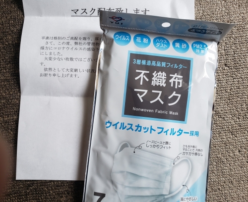 素敵な贈り物 2020.05.08 田澤 剛史 営業 田澤 です。 先日住んでるアパートのポストにこんなのが入っていました。 お手紙とマスクです。 手紙を読んでみると管理会社さんからの贈り物でした。 管理物件すべてに配布してるみたいですね。 感動です。 暗いニュースばかりで気が滅入りそうな中、このような出来事があり、 とても嬉しく思いました。 私自身も協力できることがあればしていきたいなと思います。 今のところはステイホームが一番の協力かもしれませんが・・・ 一日でも早い終息を祈っています。 — — — — — — — — — — — — — — — — — — — — — — 室蘭、登別、伊達、苫小牧の新築・注文住宅は住まいのウチイケ。省エネルギー性能の優れた住宅を提供、リフォームも対応しています。モデルハウスも常時見学可能ですのでお気軽にどうぞ。 住まいのウチイケ http://www.uchiike-home.co.jp 田澤 剛史 左 室蘭ブログ ブログ 右