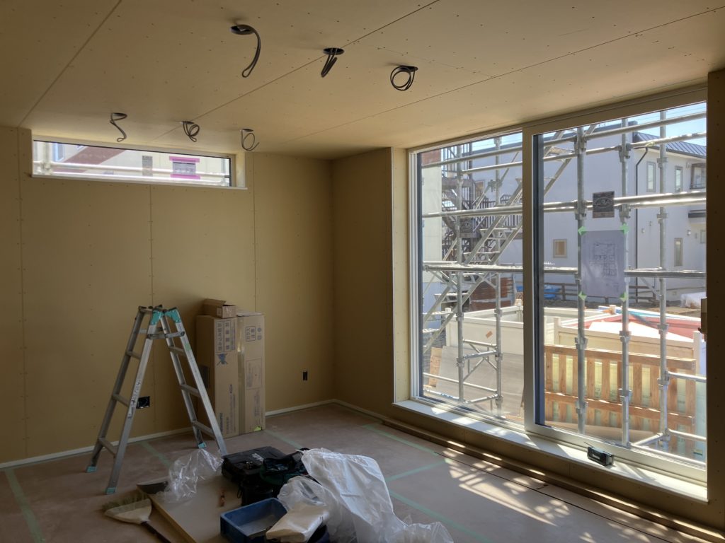 鋼製壁SWS施工し、壁石膏ボードを施工しました。