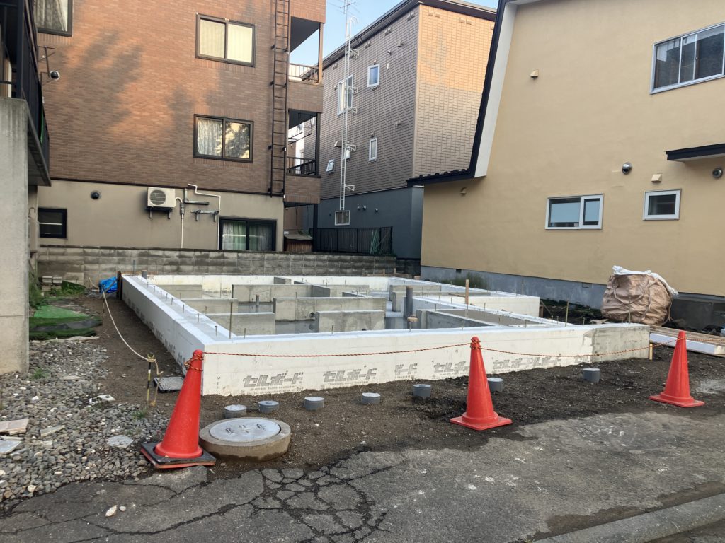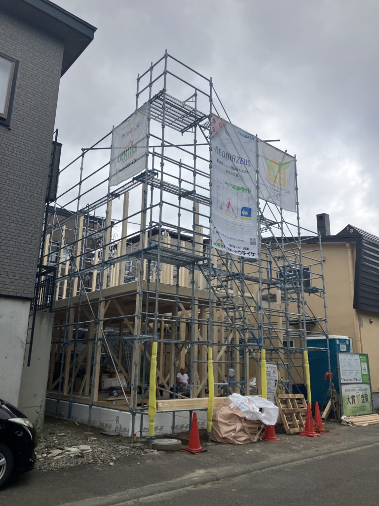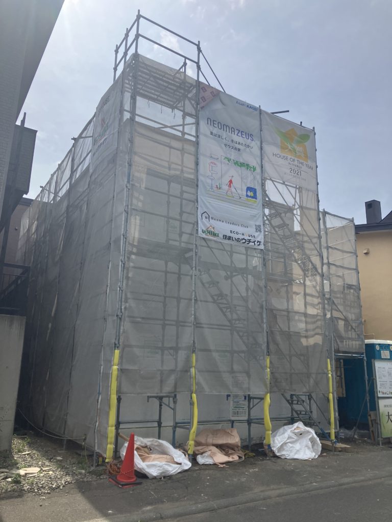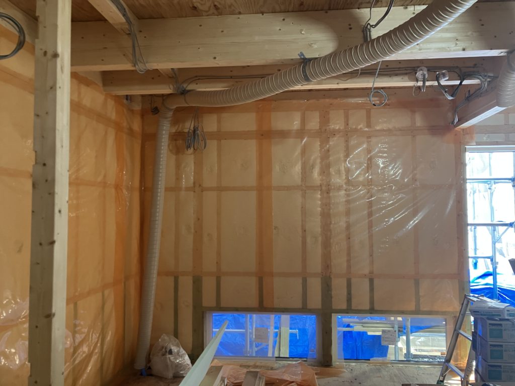 外張り断熱、吹きこみブローイング工事が完了しています。