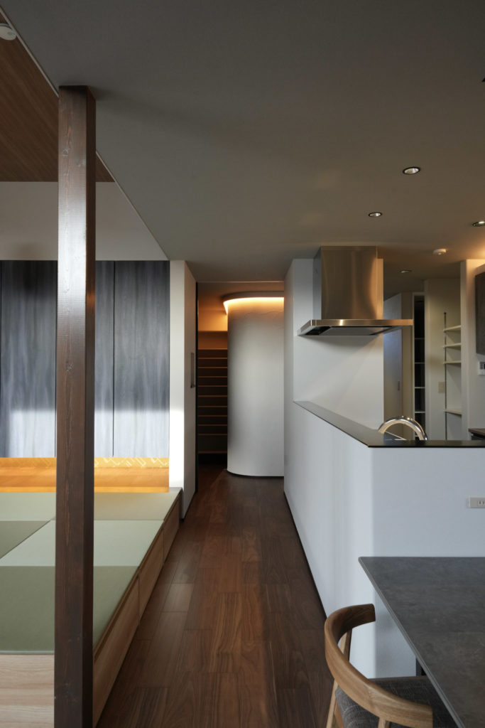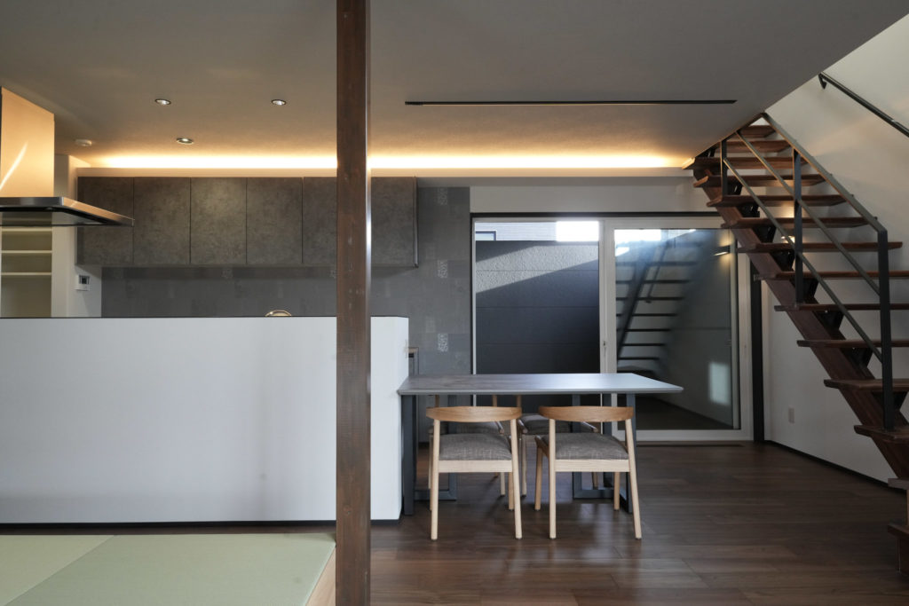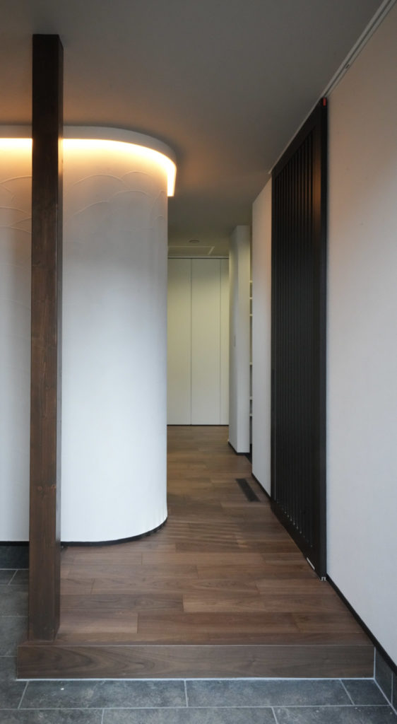玄関を開ければ、黒を基調とした和の穏やかな空間が広がります。仕事や子育てに忙しい毎日だからこそ、家では心から安らぎたい。そんな願いを叶える上質な「和モダン」の家です。