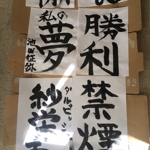 書道!! 2016.10.14 池田 征弥 こんばんは。 最近、夜が長くなってきましたね。 お仕事お帰りの際には交通事故に気をつけましょう。 さて、わたしは先日のお休みの日。 朝何事もなく目覚めると午前6時・・・ こんな朝早く起きて何をしようかと考えたところ やろうやろうと思いやっていなかったこと。 ・外付けポスト作り(すでに組立終わり、文字を彫る段階) ・書道(心を落ち着かせ、精神を鍛えるため) 上の2つを行いました。 ポストは以前パイン材をサンワドーさんで購入し、採寸後のこぎりでカットしたものをビス止めし、ふたの部分に彫刻刀で「POST」と文字を彫りました。約30分程度。(写真はありません。今度撮ってきます) 続いて書道の用意。 わたし、池田は小学校の頃習字を習っており、筆を持つのは約12年ぶり。 昔やっていたことは体が覚えているようですんなりと1枚目のためし書き。 2枚目からは徐々に本気に。ですが、なにを書けばよいのかわからずそばにあったマンガやDVDのタイトルや新聞の文字が目に入りそれを書いていきました。 そうこうしている間に1時間がたち、残した書は6枚になりました。 それがこちら。(上二枚切れてます)久しぶりにはなかなかだと思い友人に見せると 「下手すぎて笑った。」 といわれました。 池田、しょぼーん。。 ですが、たまにはこんな休日もあっていいなと。 低価格で一日を満喫した池田でした。 — — — — — — — — — — — — — — — — — — — — — — 室蘭、登別、伊達、苫小牧の新築・注文住宅は住まいのウチイケ。省エネルギー性能の優れた住宅を提供、リフォームも対応しています。モデルハウスも常時見学可能ですのでお気軽にどうぞ。 住まいのウチイケ http://www.uchiike-home.co.jp 池田 征弥 左 室蘭 ブログ 右